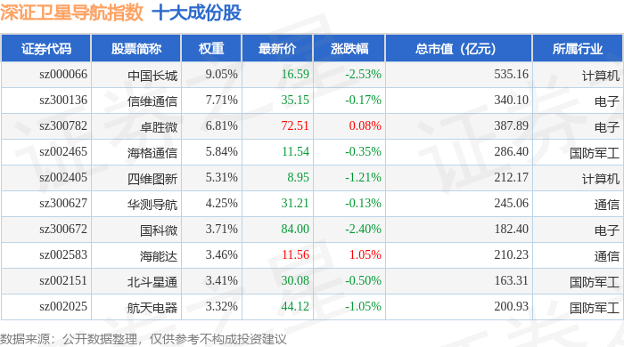 深证卫星导航(970050)指数十大成份股详情如下: