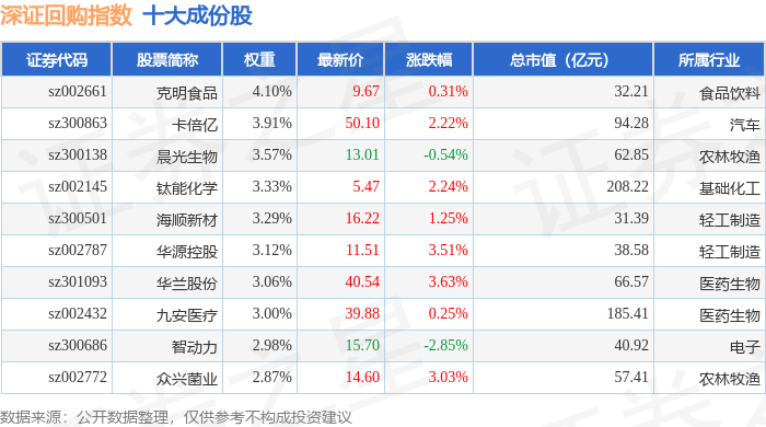 资金流向方面,深证回购(970063)指数成份股当日主力资金净流出合计7989.12万元,游资资金净流入合计6293.83万元,散户资金净流入合计1695.29万元。成份股资金流向详情见下表: