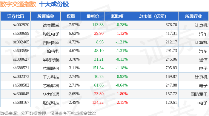 数字交通(980075)指数十大成份股详情如下: