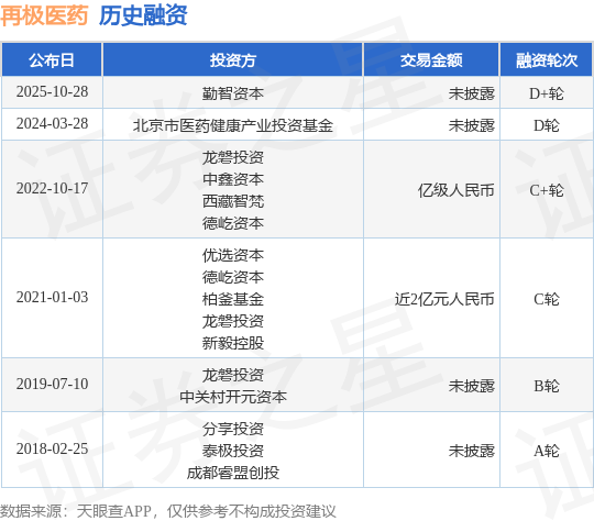 证券之星消息,根据天眼查APP于10月28日公布的信息整理,北京再极医药科技有限公司D+轮融资,融资额未披露,参与投资的机构包括勤智资本。