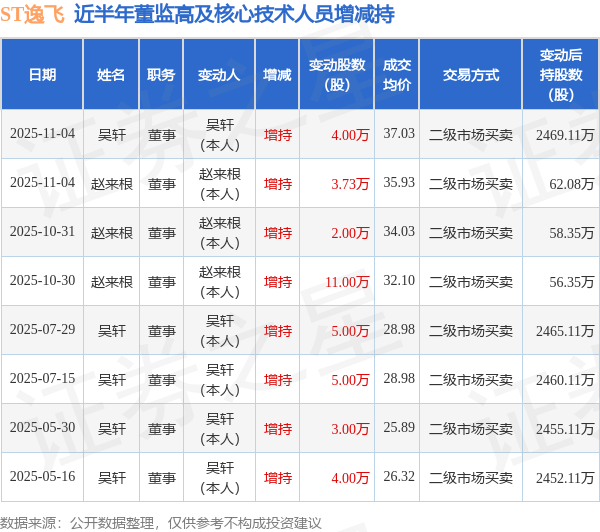 ST逸飞近半年内的董监高及核心技术人员增减持详情如下: