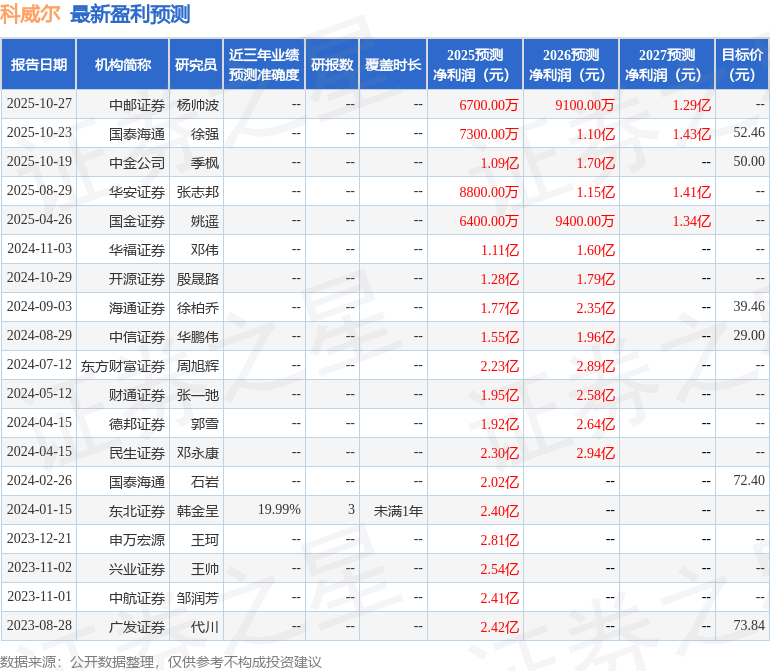 华安证券股份有限公司张志邦近期对科威尔进行研究并发布了研究报告《测试电源业务稳健增长,AI服务器打开新空间》,给予科威尔买入评级。