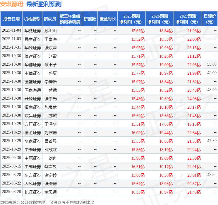 群益证券(香港)有限公司顾向君近期对安琪酵母进行研究并发布了研究报告《Q3国内承压,海外延续较快增长》,上调安琪酵母目标价至43.0元,给予增持评级。