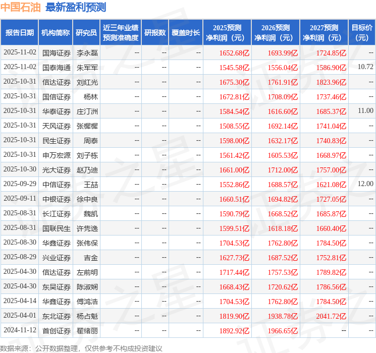 中银国际证券股份有限公司余嫄嫄,徐中良近期对中国石油进行研究并发布了研究报告《三季度业绩环比增长,天然气销售效益持续提升》,给予中国石油买入评级。