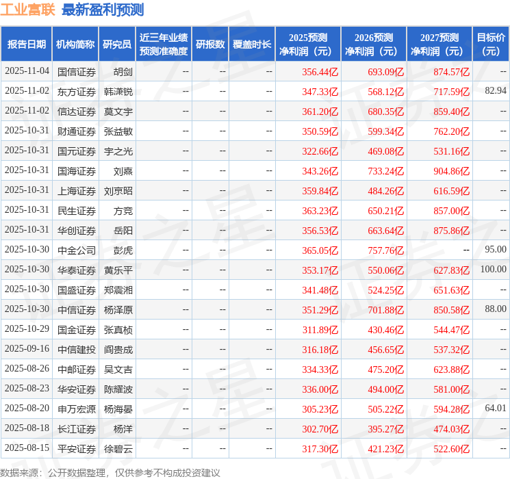 华安证券股份有限公司李美贤,陈耀波,闫春旭近期对工业富联进行研究并发布了研究报告《工业富联:AI服务器高速放量,Q3盈利能力大幅提升》,给予工业富联增持评级。