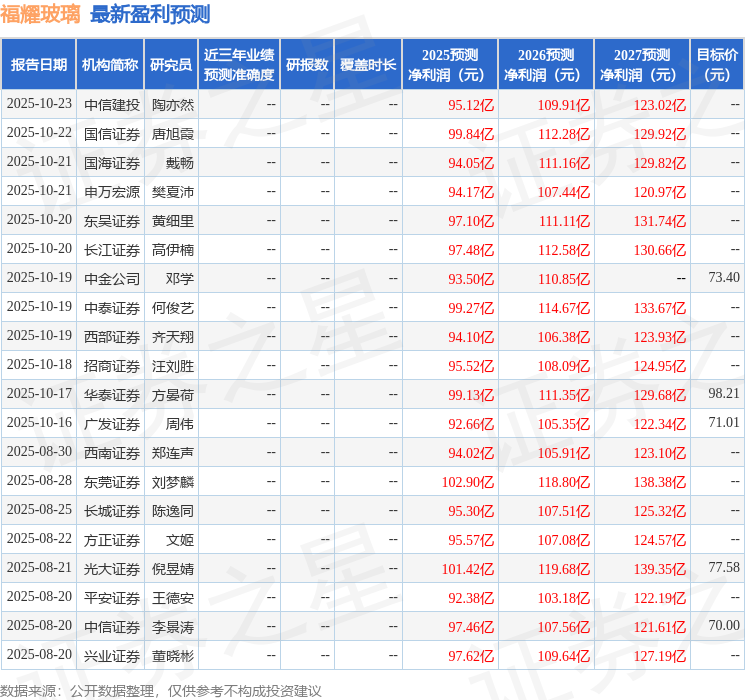 海通国际证券集团有限公司王沈昱,王凯近期对福耀玻璃进行研究并发布了研究报告《2025年三季报:主业稳健,利润短期扰动不改长期弹性》,上调福耀玻璃目标价至74.67元,给予增持评级。