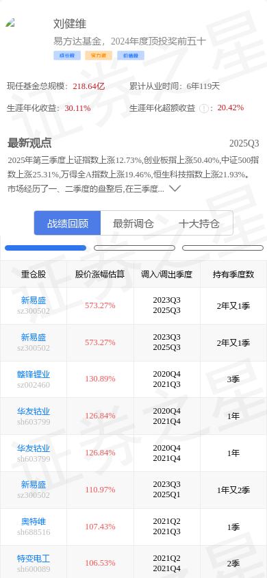 在最新基金报告期内,刘健维有以下调仓(附大佬持仓 - 最新调仓截图):