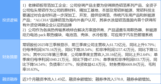 该股为有色 · 铝,汽车热管理,有色金属概念热股,当日有色 · 铝概念上涨3.64%,汽车热管理概念上涨2.22%,有色金属概念上涨2.15%。