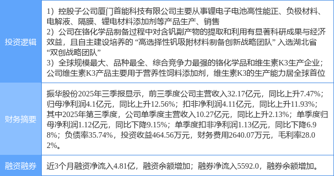 证券之星消息,振华股份11月6日涨停收盘,收盘价33.1元。该股于10点48分涨停,未打开涨停,截止收盘封单资金为1.44亿元,占其流通市值0.61%。