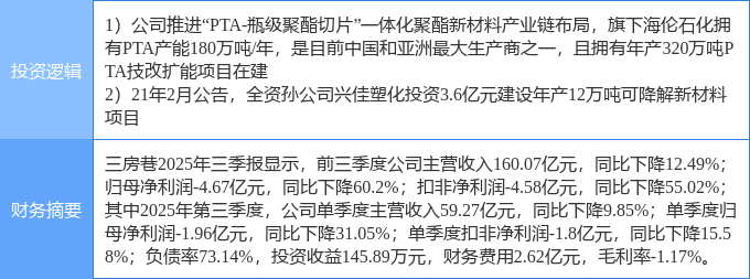 该股为PTA,可降解塑料概念热股,当日PTA概念上涨5.77%,可降解塑料概念上涨1.42%。