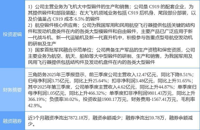 证券之星消息,三角防务11月6日涨停收盘,收盘价30.59元。该股于9点30分涨停,2次打开涨停,截止收盘封单资金为1.75亿元,占其流通市值1.08%。