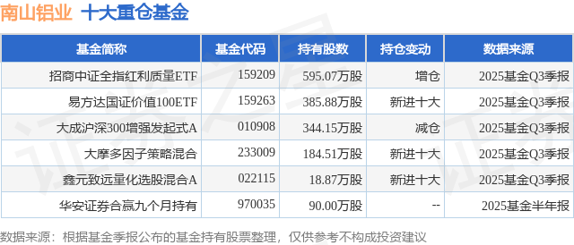 根据2025基金Q3季报公募基金重仓股数据,重仓该股的公募基金共5家,其中持有数量最多的公募基金为招商基金的招商中证全指红利质量ETF。招商中证全指红利质量ETF目前规模为4.59亿元,最新净值1.1501(11月5日),较上一交易日上涨0.33%。该公募基金现任基金经理为刘重杰。刘重杰在任的基金产品包括:招商深证100ETF,管理时间为2019年11月7日至今,期间收益率为65.32%;招商中证红利ETF,管理时间为2019年11月28日至今,期间收益率为108.66%;招商国证食品饮料ETF,管理时间为2021年1月25日至今,期间收益率为-35.1%;招商中证畜牧养殖ETF,管理时间为2021年3月18日至今,期间收益率为-28.31%。