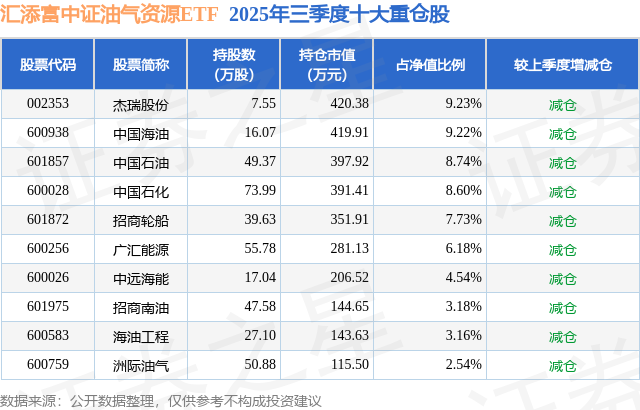 汇添富中证油气资源ETF的前十大重仓股如下: