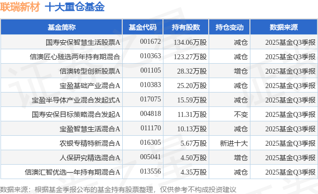 重仓联瑞新材的前十大公募基金请见下表: