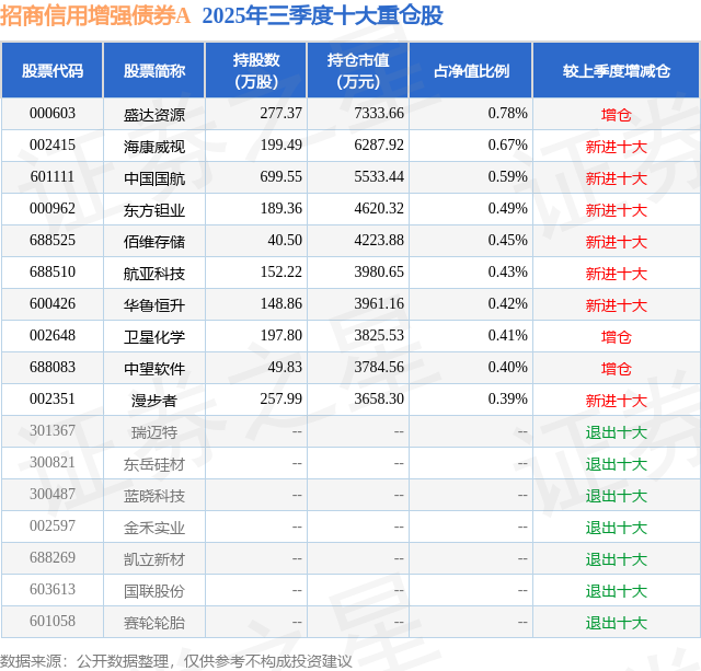 根据2025基金Q3季报公募基金重仓股数据,重仓该股的公募基金共12家,其中持有数量最多的公募基金为招商基金的招商信用增强债券A。招商信用增强债券A目前规模为78.19亿元,最新净值1.1426(11月5日),较上一交易日上涨0.07%,近一年上涨6.97%。该公募基金现任基金经理为滕越 夏里鹏。滕越在任的基金产品包括:招商民安增益债券A,管理时间为2020年3月6日至今,期间收益率为32.03%;招商安本增利债券A,管理时间为2022年1月5日至今,期间收益率为22.87%;招商安泽稳利9个月持有期混合A,管理时间为2023年11月14日至今,期间收益率为20.19%。夏里鹏在任的基金产品包括:招商招华纯债A,管理时间为2022年9月9日至今,期间收益率为11.96%;招商添韵3个月定开债A,管理时间为2023年8月8日至今,期间收益率为6.41%;招商招裕纯债A,管理时间为2024年11月26日至今,期间收益率为2.46%;
