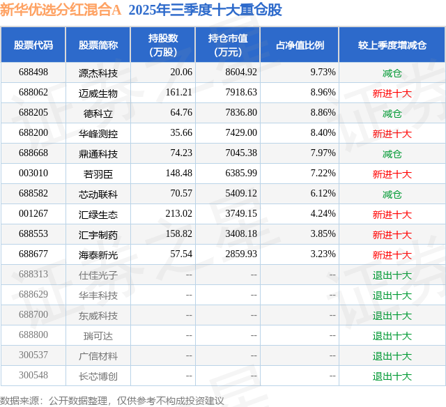 根据2025基金Q3季报公募基金重仓股数据,重仓该股的公募基金共19家,其中持有数量最多的公募基金为新华基金的新华优选分红混合A。新华优选分红混合A目前规模为8.84亿元,最新净值0.8987(11月5日),较上一交易日下跌0.44%,近一年上涨57.46%。该公募基金现任基金经理为赵强。赵强在任的基金产品包括:新华策略精选股票A,管理时间为2017年5月17日至今,期间收益率为169.02%;新华安享多裕定开混合,管理时间为2022年10月25日至今,期间收益率为-10.74%;新华趋势领航混合,管理时间为2022年10月25日至今,期间收益率为2.02%。