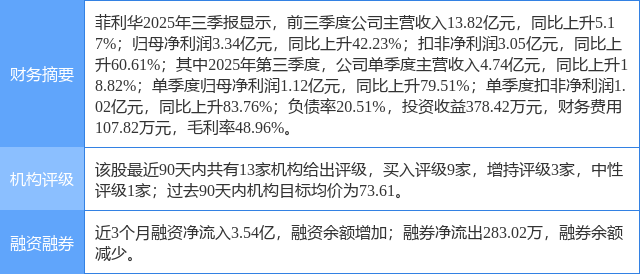 今日菲利华(300395)涨7.11%,收盘报79.89元。