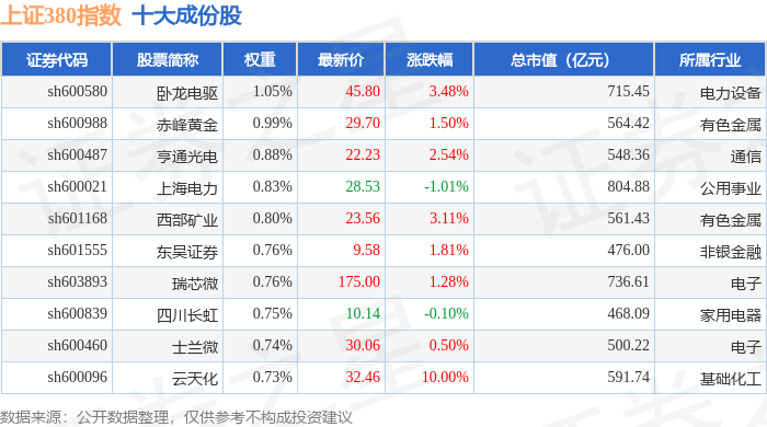 证券之星消息,11月6日,上证380(000009)指数报收于6570.82点,涨1.37%,成交1903.51亿元,换手率1.85%。当日该指数成份股中,上涨的有273家,新凤鸣以10.03%的涨幅领涨,下跌的有97家,长白山以9.48%的跌幅领跌。