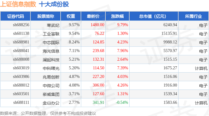 证券之星消息,11月6日,上证信息(000039)指数报收于5890.36点,涨3.47%,成交1307.0亿元,换手率2.01%。当日该指数成份股中,上涨的有42家,寒武纪以9.79%的涨幅领涨,下跌的有7家,闻泰科技以4.78%的跌幅领跌。