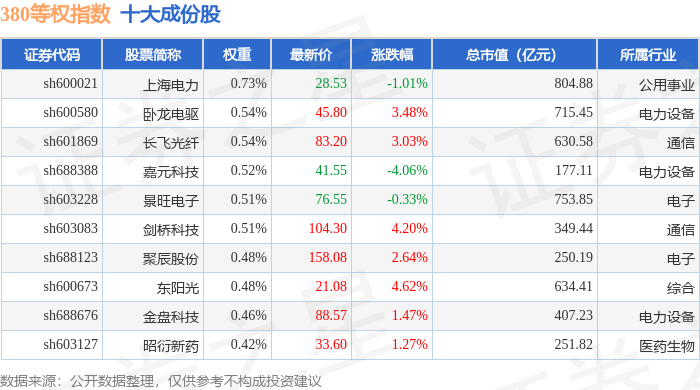 证券之星消息,11月6日,380等权(000115)指数报收于8735.55点,涨1.23%,成交1903.51亿元,换手率1.85%。当日该指数成份股中,上涨的有273家,新凤鸣以10.03%的涨幅领涨,下跌的有97家,长白山以9.48%的跌幅领跌。
