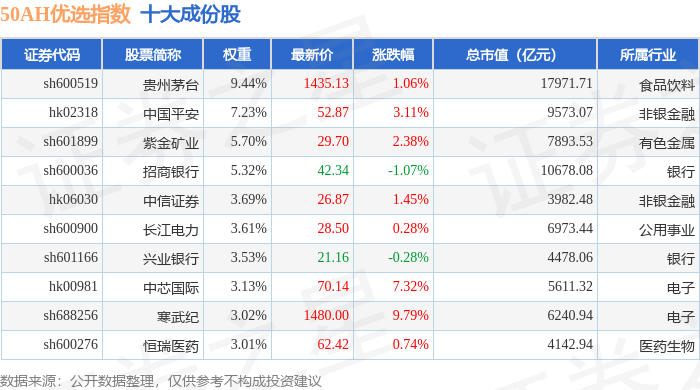 50AH优选(000170)指数十大成份股详情如下: