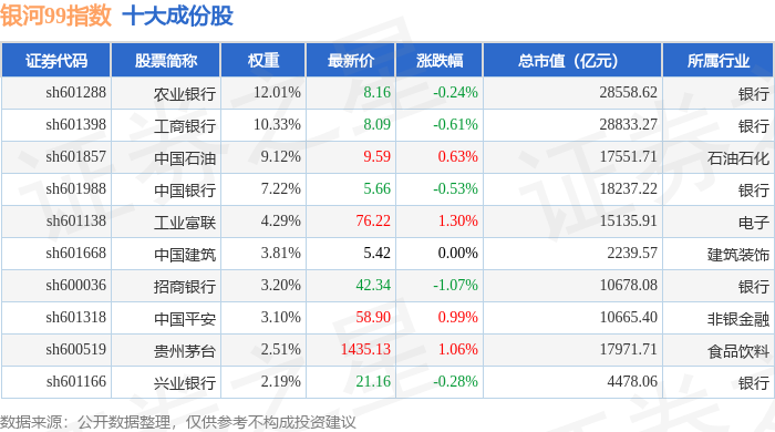 银河99(000959)指数十大成份股详情如下: