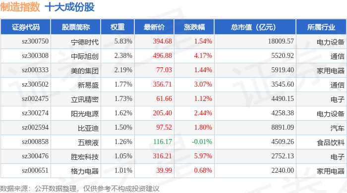 证券之星消息,11月6日,制造指数(399233)报收于3434.57点,涨1.66%,成交8462.27亿元,换手率3.31%。当日该指数成份股中,上涨的有1150家,清水源以20.04%的涨幅领涨,下跌的有732家,万里马以10.17%的跌幅领跌。