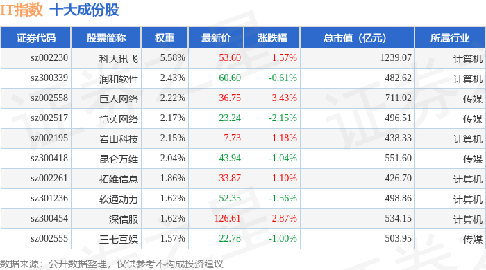 资金流向方面,IT指数(399239)成份股当日主力资金净流出合计38.31亿元,游资资金净流入合计5.5亿元,散户资金净流入合计32.8亿元。成份股资金流向详情见下表: