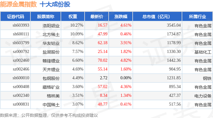 资金流向方面,能源金属(399366)指数成份股当日主力资金净流入合计6.43亿元,游资资金净流出合计2.99亿元,散户资金净流出合计3.44亿元。成份股资金流向详情见下表: