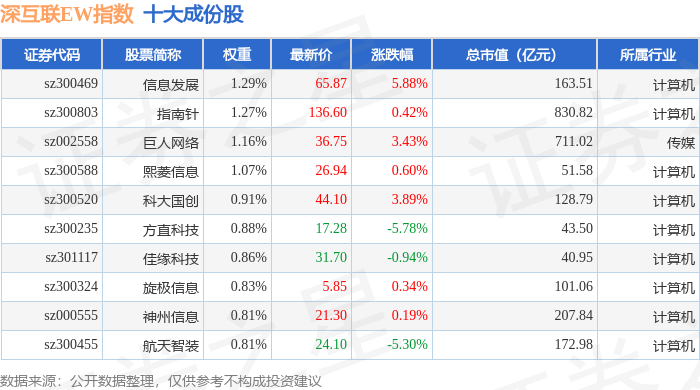 深互联EW(399677)指数十大成份股详情如下: