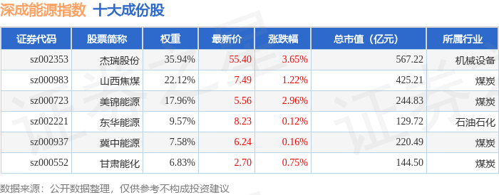 证券之星消息,11月6日,深成能源(399680)指数报收于739.22点,涨2.22%,成交36.74亿元,换手率2.83%。当日该指数成份股中,上涨的有6家,杰瑞股份以3.65%的涨幅领涨。