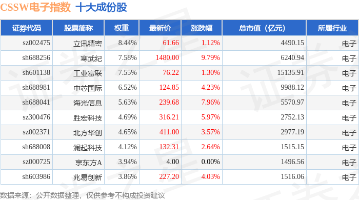 资金流向方面,CSSW电子(399811)指数成份股当日主力资金净流入合计75.66亿元,游资资金净流出合计38.71亿元,散户资金净流出合计36.95亿元。成份股资金流向详情见下表: