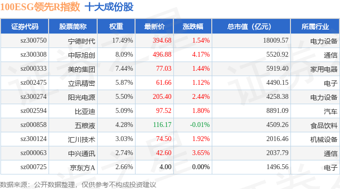 资金流向方面,100ESG领先R(470030)指数成份股当日主力资金净流入合计39.57亿元,游资资金净流出合计21.86亿元,散户资金净流出合计17.71亿元。成份股资金流向详情见下表: