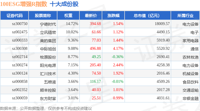 资金流向方面,100ESG增强R(470033)指数成份股当日主力资金净流入合计47.08亿元,游资资金净流出合计27.68亿元,散户资金净流出合计19.4亿元。成份股资金流向详情见下表: