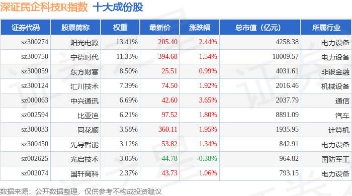 深证民企科技R(470059)指数十大成份股详情如下:
