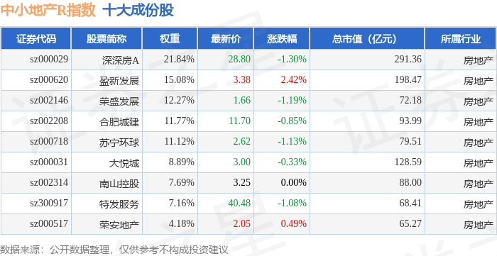 中小地产R(471002)指数十大成份股详情如下: