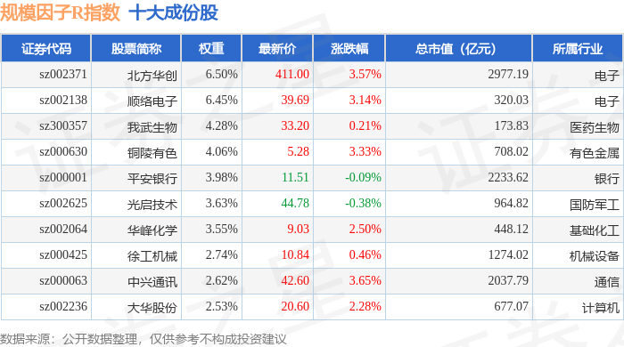 证券之星消息,11月6日,规模因子R(480055)指数报收于2356.62点,涨1.49%,成交520.21亿元,换手率1.64%。当日该指数成份股中,上涨的有36家,科士达以10.0%的涨幅领涨,下跌的有14家,东方精工以2.88%的跌幅领跌。