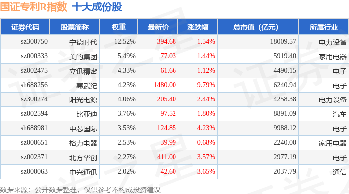 国证专利R(480070)指数十大成份股详情如下: