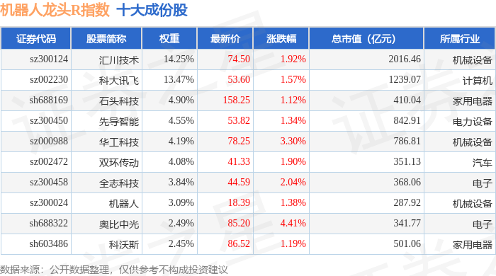 资金流向方面,机器人龙头R(480071)指数成份股当日主力资金净流入合计1.74亿元,游资资金净流出合计2.59亿元,散户资金净流入合计8499.35万元。成份股资金流向详情见下表: