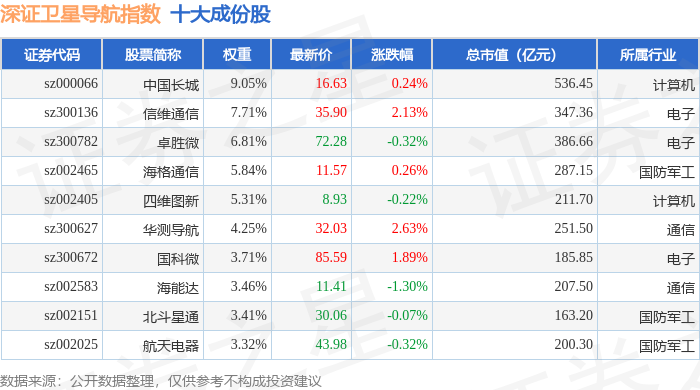 证券之星消息,11月6日,深证卫星导航(970050)指数报收于3215.56点,涨0.87%,成交169.78亿元,换手率3.28%。当日该指数成份股中,上涨的有24家,赛微电子以13.14%的涨幅领涨,下跌的有15家,中海达以2.03%的跌幅领跌。