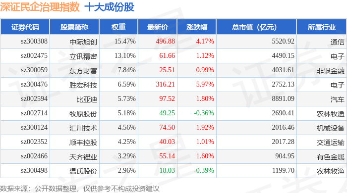 深证民企治理(970058)指数十大成份股详情如下:
