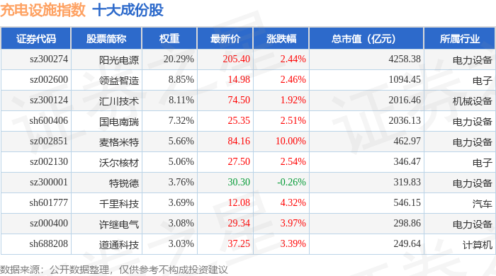 证券之星消息,11月6日,充电设施(980077)指数报收于4197.17点,涨2.54%,成交583.88亿元,换手率4.03%。当日该指数成份股中,上涨的有34家,科士达以10.0%的涨幅领涨,下跌的有12家,金冠电气以4.85%的跌幅领跌。