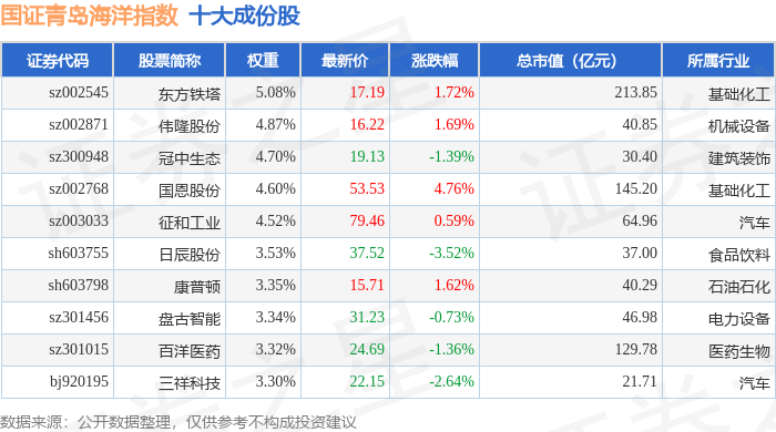 国证青岛海洋(980532)指数十大成份股详情如下:
