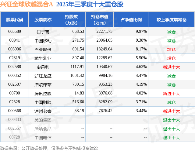 兴证全球欣越混合A的前十大重仓股如下: