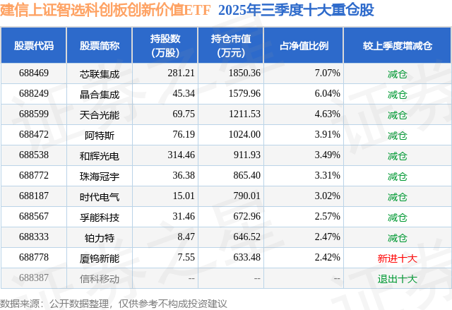 建信上证智选科创板创新价值ETF的前十大重仓股如下: