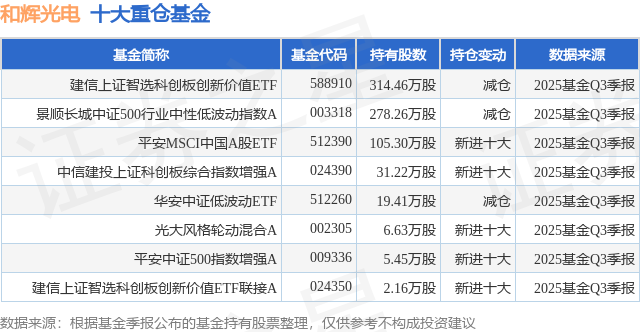 根据2025基金Q3季报公募基金重仓股数据,重仓该股的公募基金共8家,其中持有数量最多的公募基金为建信基金的建信上证智选科创板创新价值ETF。建信上证智选科创板创新价值ETF目前规模为2.62亿元,最新净值1.3374(11月6日),较上一交易日上涨1.12%。该公募基金现任基金经理为张溢麟。张溢麟在任的基金产品包括:建信民丰回报混合,管理时间为2023年1月4日至今,期间收益率为5.4%;建信双债增强债券A,管理时间为2024年6月27日至今,期间收益率为6.32%;建信上证智选科创板创新价值ETF联接A,管理时间为2025年6月20日至今,期间收益率为19.82%。