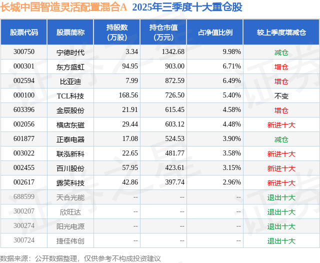 长城中国智造灵活配置混合A的前十大重仓股如下: