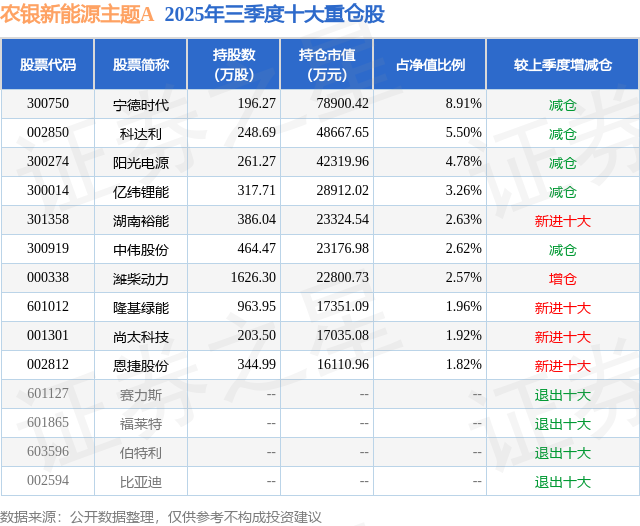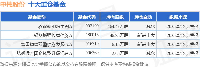 根据2025基金Q3季报公募基金重仓股数据,重仓该股的公募基金共4家,其中持有数量最多的公募基金为农银汇理基金的农银新能源主题A。农银新能源主题A目前规模为87.86亿元,最新净值3.0232(11月6日),较上一交易日上涨1.7%,近一年上涨24.75%。该公募基金现任基金经理为邢军亮 左腾飞。邢军亮在任的基金产品包括:农银行业轮动混合A,管理时间为2021年7月15日至今,期间收益率为45.3%;农银绿色能源混合,管理时间为2022年8月2日至今,期间收益率为-4.0%。