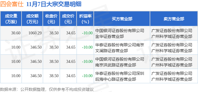 证券之星消息,11月7日四会富仕发生大宗交易,交易数据如下: