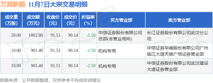 证券之星消息,11月7日万润新能发生大宗交易,交易数据如下: